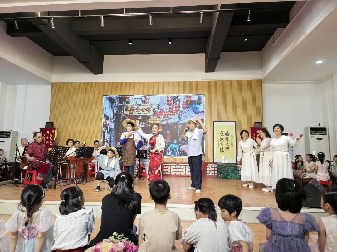 当日下午及晚间,广东省传统文化促进会与容桂青少年曲艺团联袂献上“岭南风”主题交流演出,节目亮点纷呈:• 青少年方阵 容桂青少年曲艺团的民乐合奏《赛龙夺锦》《金蛇狂舞》气势磅礴;粤曲表演唱《荔枝颂》《小心过马路》童声悠扬;粤曲弹唱《一曲粤韵谢师恩》《杨门女将》《昭君出塞》余音绕梁;笛子独奏《走进快活岭》和广东音乐五架头《柳浪闻莺》《醒狮》更让观众领略到岭南丝竹的灵动与热烈。• 艺术家方阵 广东省传统文化促进会带来的粤讴民风《板榄说唱·坊间市井》《渔歌·珠水情长》还原了广府市井与珠水风情;古埙合奏《忆江南》、古琴弦歌《红棉颂》、粤语吟诵《风筝词》《早发白帝城》等节目,则展示了岭南古韵的深邃与多元;压轴曲目管乐合奏《王二小协奏曲》以激昂旋律致敬抗战胜利80周年,将现场气氛推向高潮。