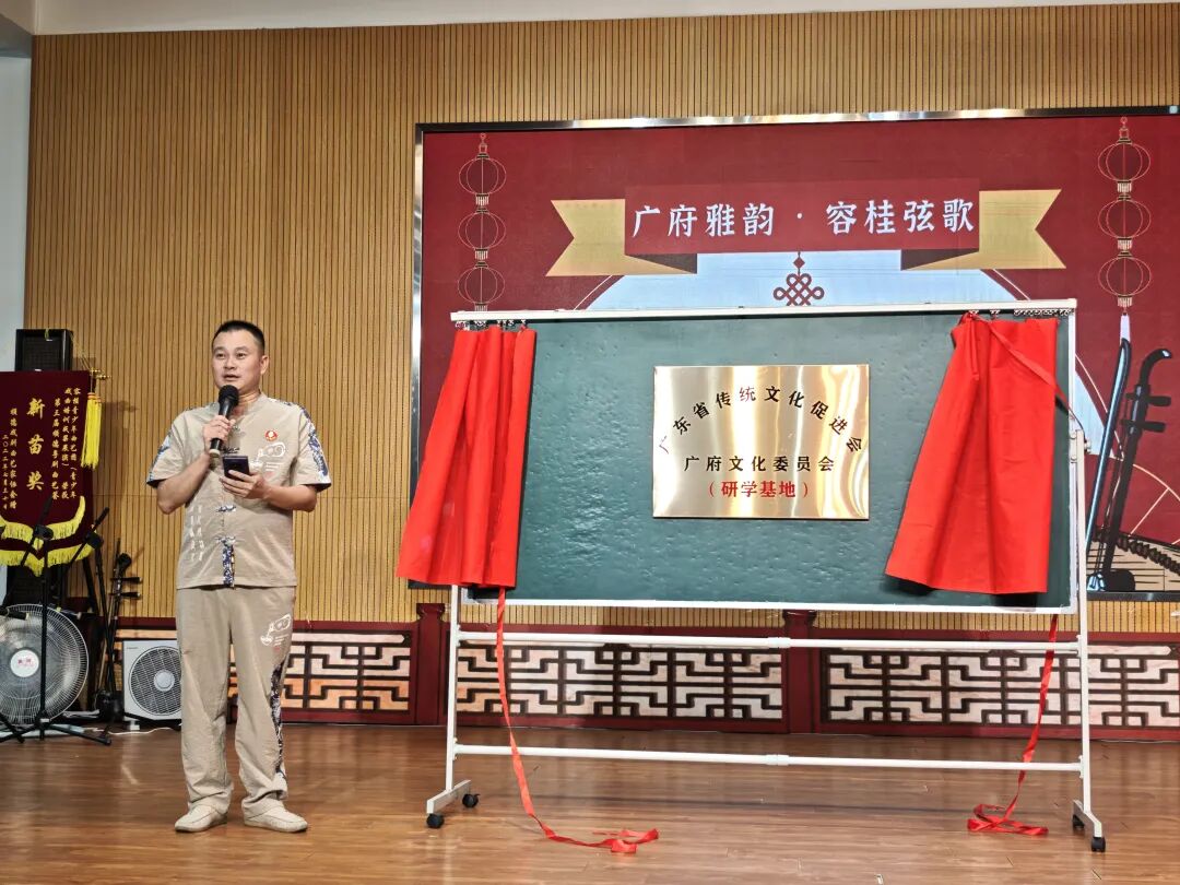 2025年7月26日,“广府雅韵·容桂弦歌”广东省传统文化促进会、广府文化委员会(顺德容桂研学基地)授牌仪式暨岭南文化遗产专题原创节目研讨会在佛山市顺德区容桂文化站隆重举行。来自省、市、区的各级领导、艺术家与容桂青少年曲艺团师生欢聚一堂,共同见证岭南传统文化在青少年中的薪火相传。